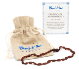 While Baltic Amber itself is non-toxic, parents should ensure that their child does not bite or chew on the amber beads to prevent a choking incident from occurring. Also, while the child should wear the necklace as often as possible to receive its full benefits, they should not wear it while sleeping to prevent strangulation.